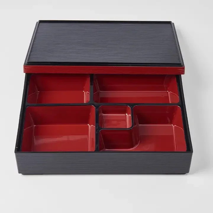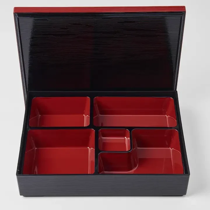 Black Outer with Red Inner 5 Section Obento 27cm-XL