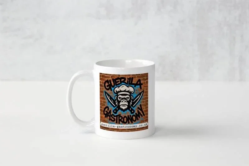 Start your day with bold flavour and even bolder style with the Guerilla Gastronomy Logo Mug. Showcasing the signature logo, this mug brings a touch of culinary attitude to every tea or coffee break.